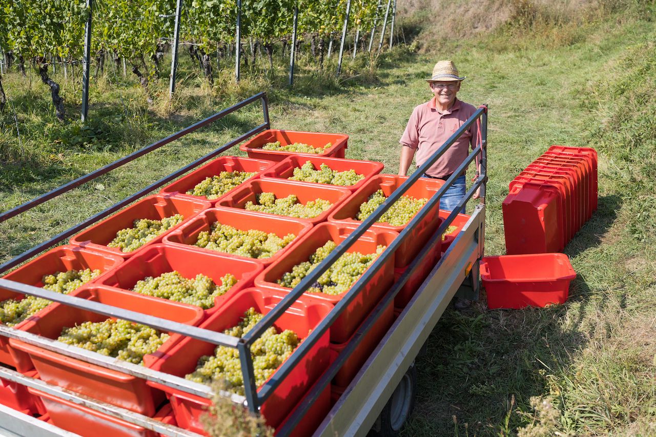 Gemeinsam mit Schwiegersohn Tobias werden so Erträge beim Spätburgunder zwischen 20 und 35 Liter pro Ar, bei Grau- und Weißburgunder etwa 45 Liter pro Ar erzielt. Insgesamt werden damit circa 10.000 Flaschen gefüllt.
